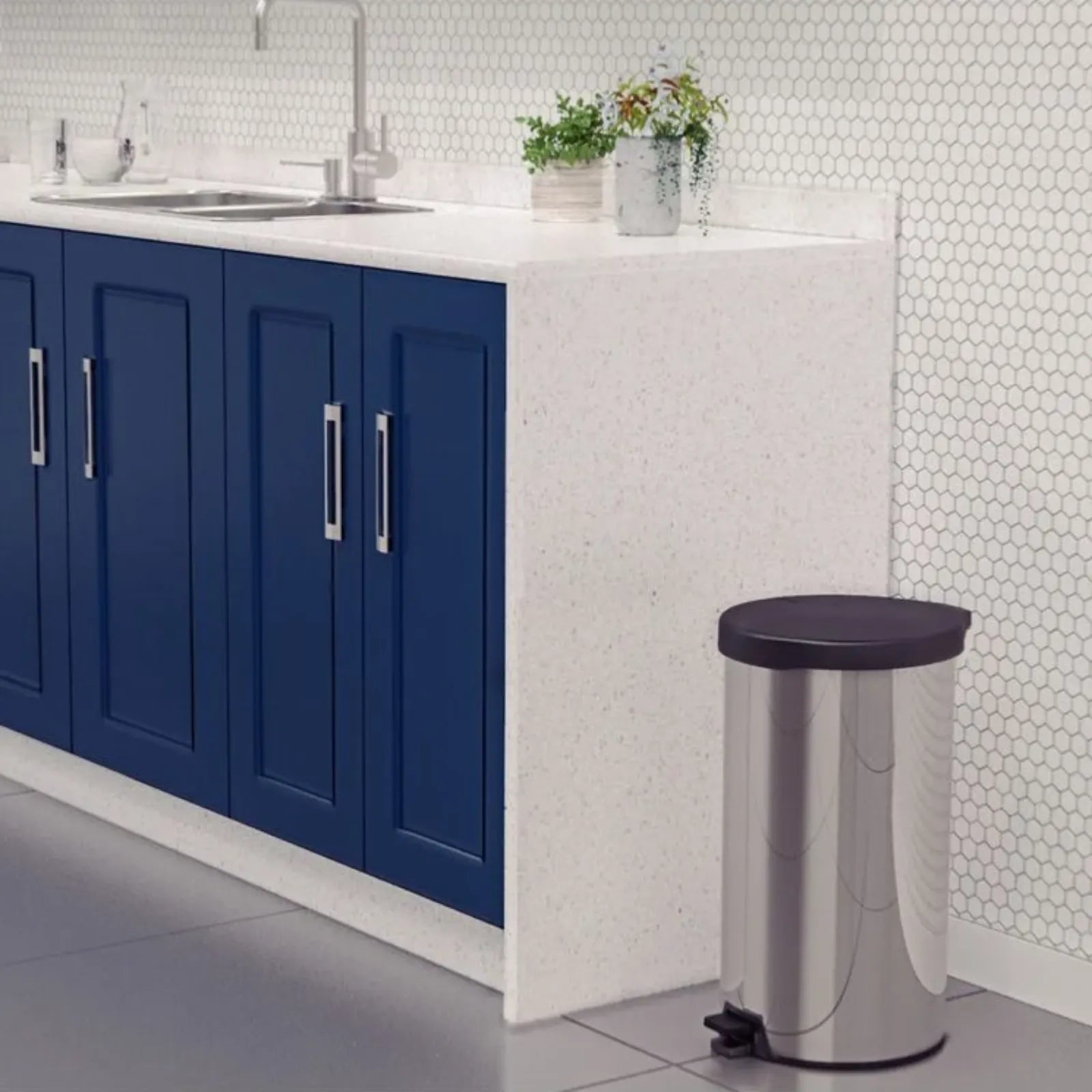 El basurero con pedal New Tramontina de 20 litros está fabricado con cuerpo de acero inoxidable y tapa de plástico. Es una pieza que se adapta a diversos tipos de ambientes, aportando practicidad, durabilidad e higiene.