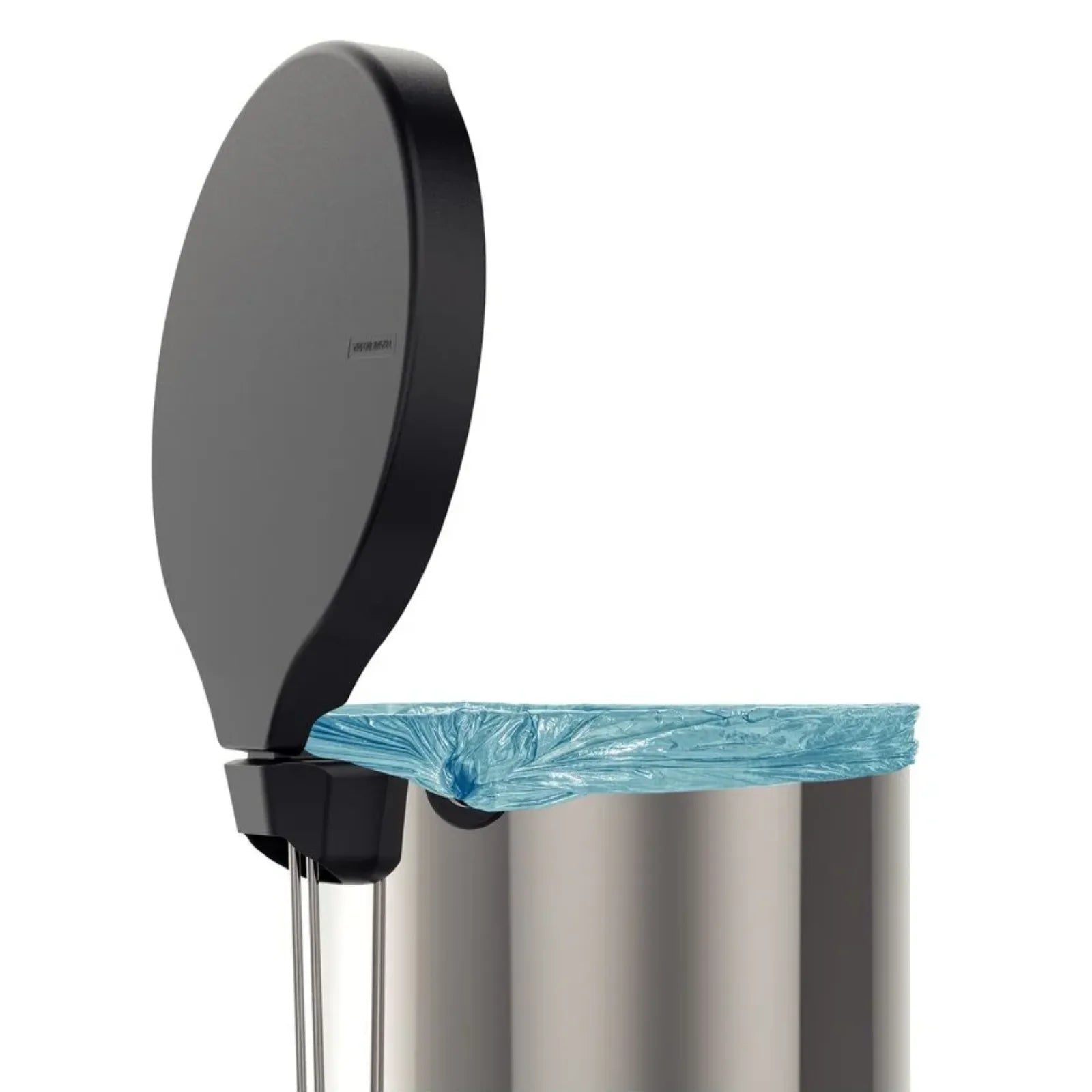 Fabricado con cuerpo de acero inoxidable, tapa pedal y base en polipropileno negro. Con el interior cerrado y liso, la bolsa de basura debe colocarse directamente en el contenedor y fijarse en el orificio lateral.