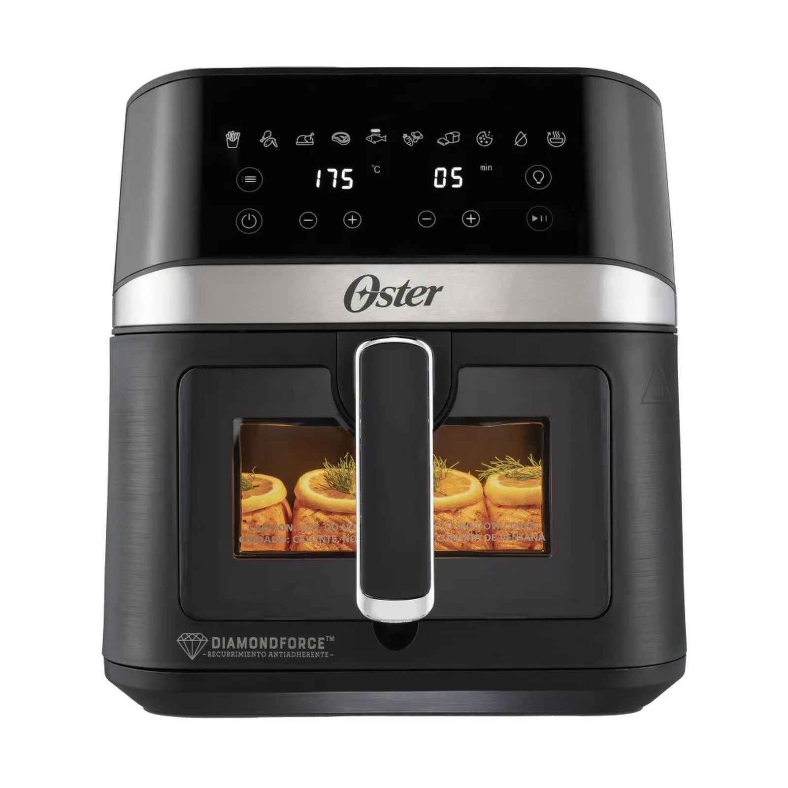 ¡Comida crujiente, deliciosa y más saludable! La freidora de aire Oster DiamondForce revoluciona tu cocina con su gran capacidad de 6 litros, recubrimiento antiadherente ultra resistente y un panel digital que hace todo más fácil. Ideal para familias, te permite preparar desde papas fritas hasta postres, con hasta 99.5% menos aceite.