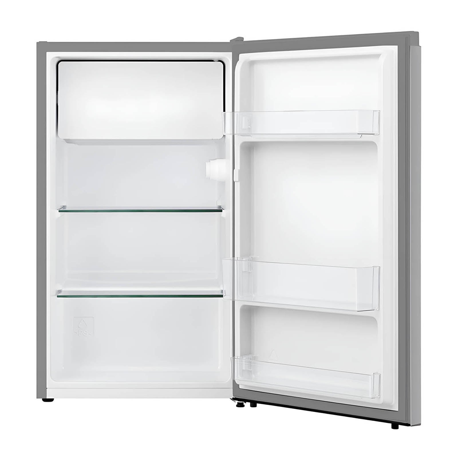 Este modelo cuenta con 3 pies cúbicos de capacidad, dos anaqueles completos y uno más para bebidas en puerta. Tiene dos parrillas de cristal templado, una amplia área en congelador, por lo que no le falta espacio para conservar el hielo. Además, está equipado con gas refrigerante R600a.