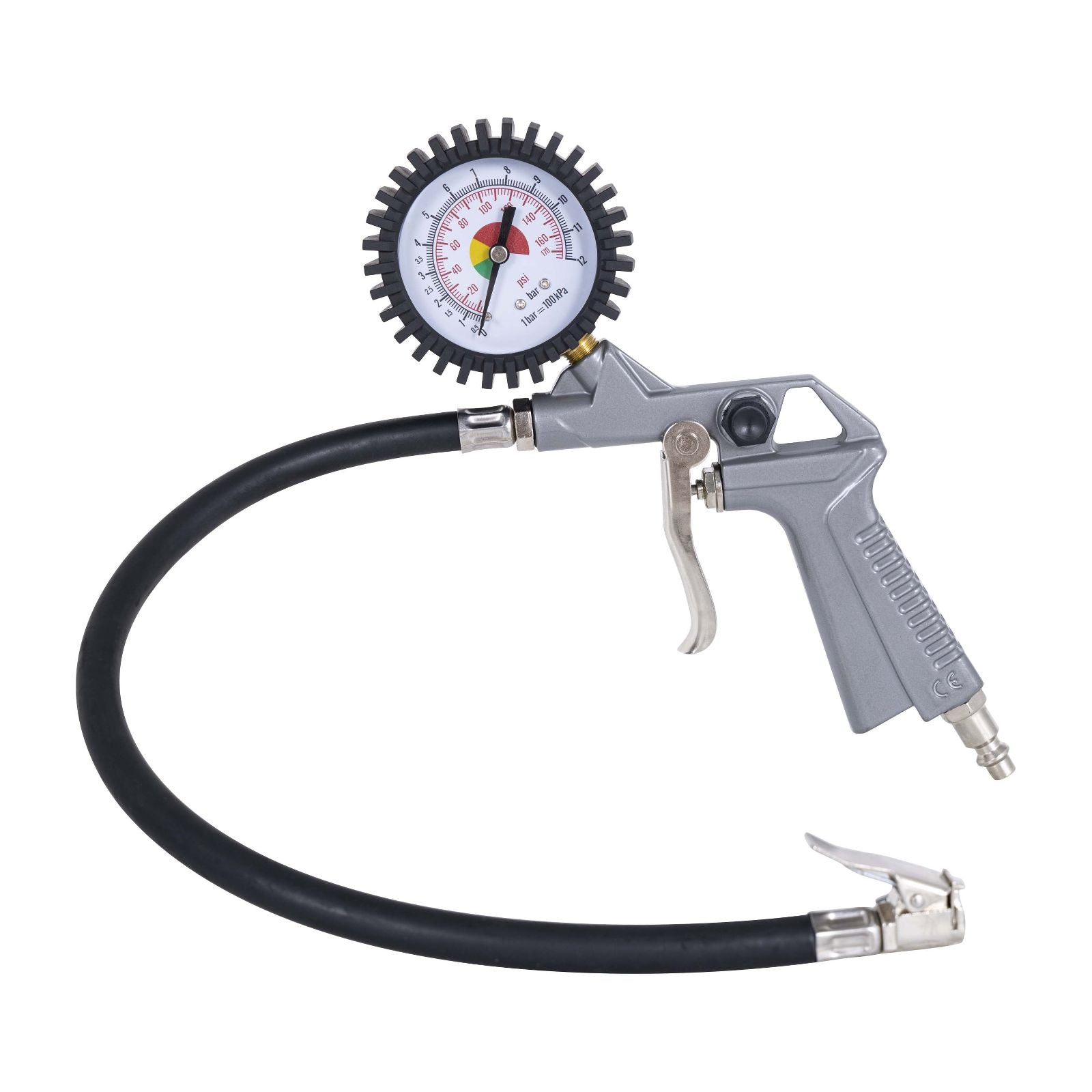 • La pistola de inflado le permite inflar, comprobar la presión y purgar el exceso de presión, todo en una sola herramienta.