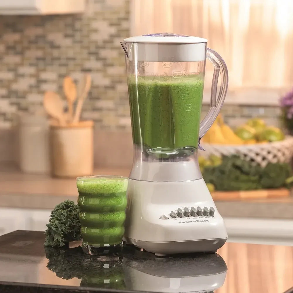La Licuadora Hamilton Beach 50166G cuenta con un diseño moderno y funcional en color blanco, ideal para cualquier tipo de cocina. Su potente motor y vaso de plástico con capacidad de 1.5 litros te permiten preparar desde batidos y salsas hasta sopas y licuados con total facilidad.