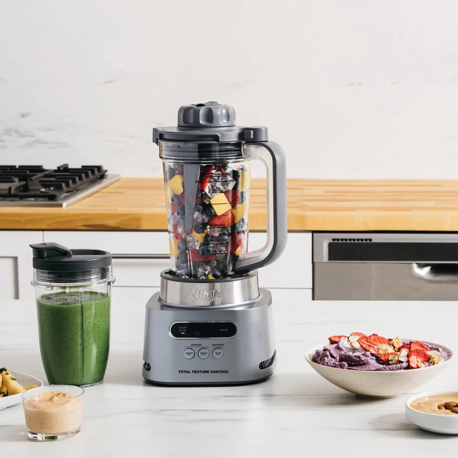 La licuadora Ninja SS150 es la herramienta perfecta para preparar una variedad de alimentos saludables y deliciosos. Con su potente motor de 1100 vatios, puede triturar fácilmente hielo, frutas y verduras congeladas, y otros alimentos duros.