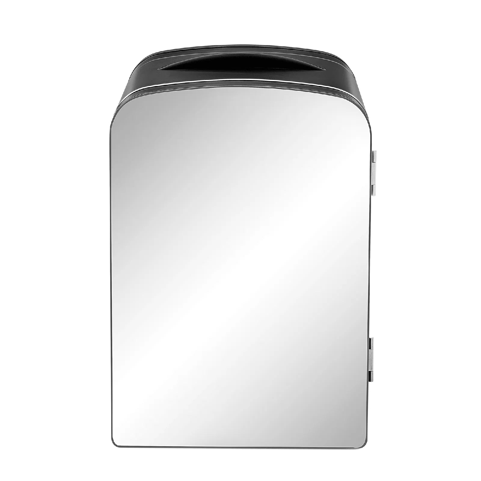 El diseño compacto es perfecto para guardar tus elementos esenciales en casa, en el trabajo, en un dormitorio o incluso mientras viajas. El color elegante y la puerta con espejo convierte a este frigorífico personal en el accesorio ideal para tu rutina matutina.