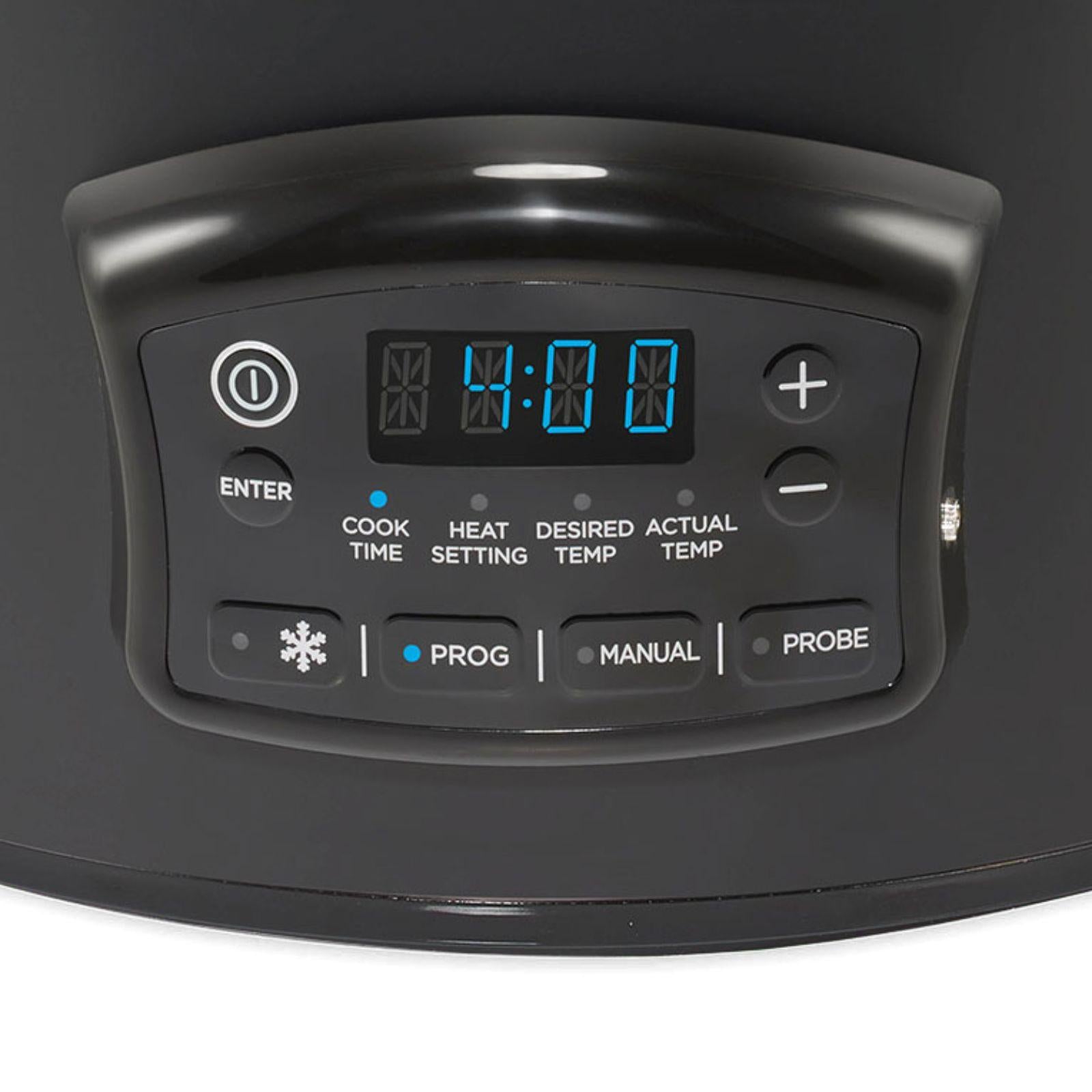 Cocción precisa y sin preocupaciones. Su sonda de temperatura integrada garantiza que tus platillos alcancen el punto exacto de cocción, mientras que su temporizador programable de 30 minutos a 24 horas te da total control, incluso si estás fuera de casa.