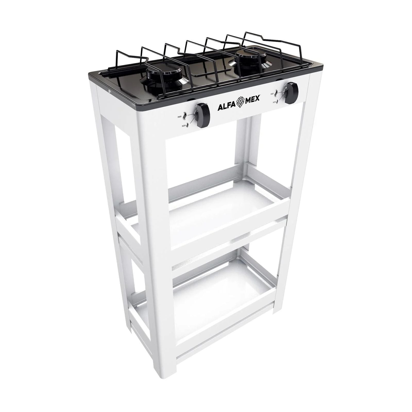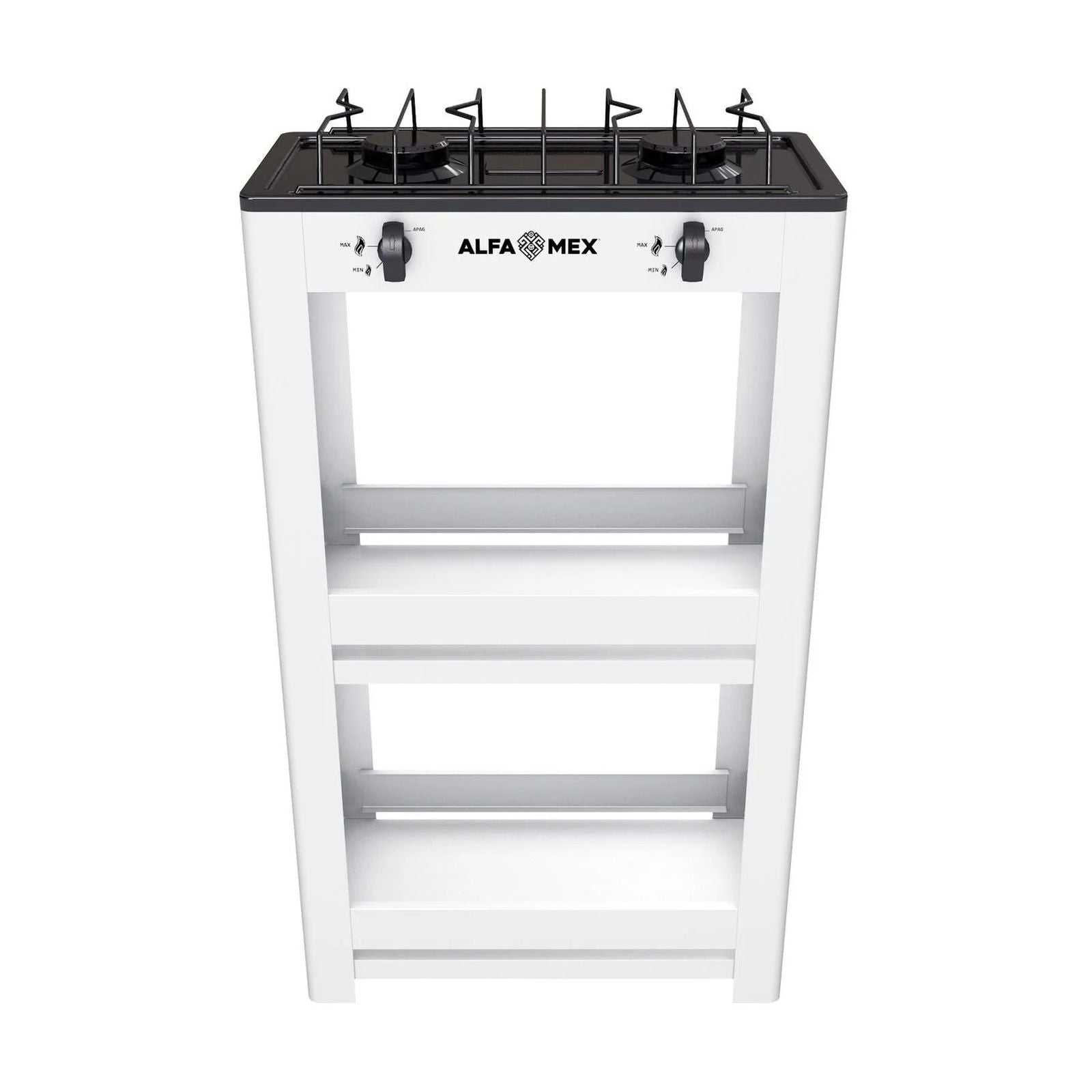 Eleva tu cocina al siguiente nivel con la parrilla de estante Alfamex 403. Con 2 quemadores potentes y un diseño resistente, es perfecta para quienes disfrutan cocinar para toda la familia o preparar varios platillos al mismo tiempo.