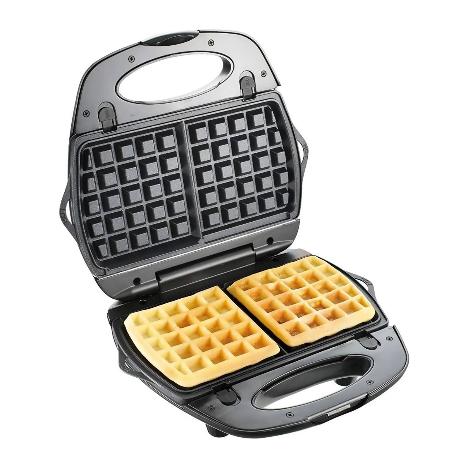 - Incluye dos juegos de placas intercambiables, una para waffles y otra para sándwiches.